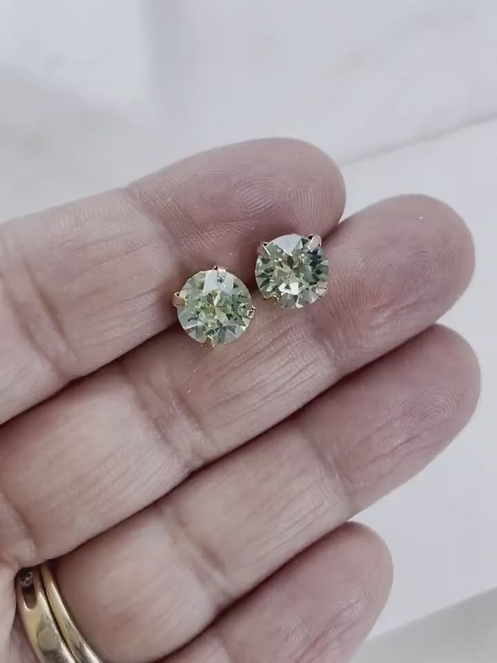 Los pendientes sencillos son el LBD de los accesorios. Aquí se muestran dos piedras engastadas con postes chapados en oro en un cristal de Swarovski de color verde claro. El tamaño de las piedras es de 8 mm y proporciona la cantidad justa de brillo. Fabricados con materiales de alta calidad diseñados para brindar comodidad y uso duradero, puedes hacer de estos aretes tu accesorio favorito. Además, su diseño sencillo pero elegante los hace perfectos para cualquier ocasión.