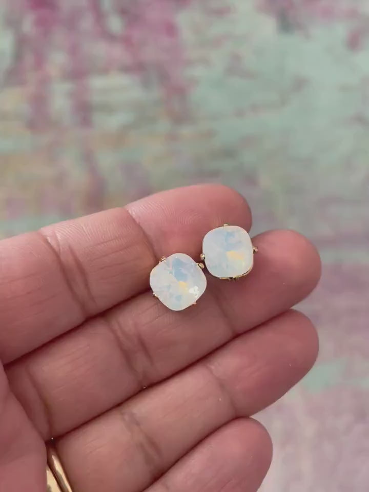 Estos femeninos aretes de cristal están hechos con cristales de ópalo blanco que tienen un brillo interior. Coloco a mano cada cristal Swarovski cortado en cojín cuadrado de 10 mm en postes chapados en oro rosa. Los cristales de casi 4 quilates son perfectos para una ocasión especial o para el día a día. * Esta pieza atemporal es el complemento perfecto para cualquier conjunto nupcial y su diseño clásico garantiza que nunca pasará de moda. Con sus brillantes cristales de ópalo blanco y su elegante baño de oro rosa, estos aretes serán un preciado recuerdo que podrá disfrutar durante muchos años.