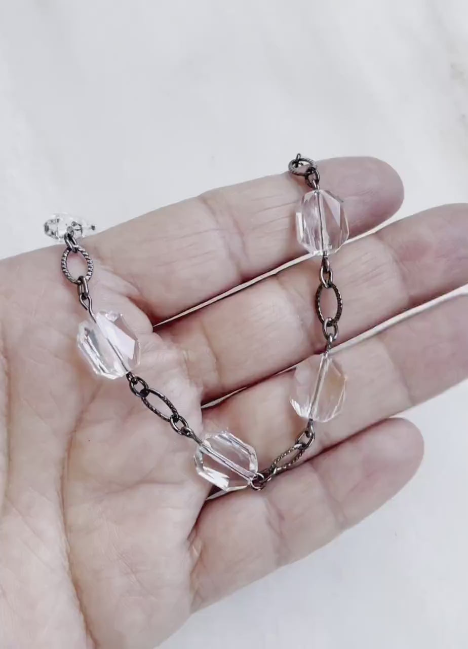 Bracelet en cristal clair sur gunmetal