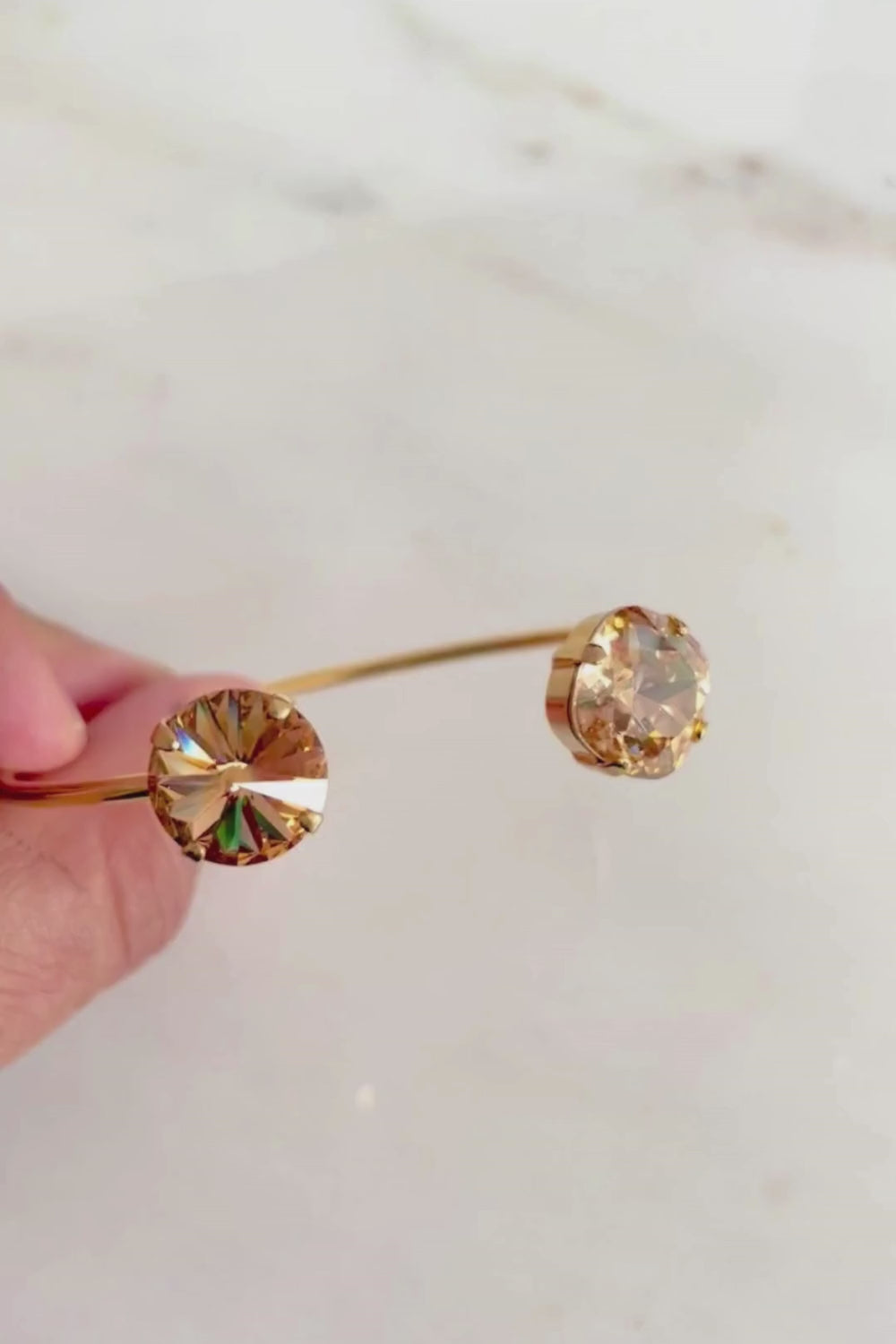 Ce bracelet en or jaune donne vie à votre collection avec ses cristaux brillants aux teintes dorées ! Les bracelets à manchette ouverte empilables sont l’accessoire parfait pour éblouir vos bras.