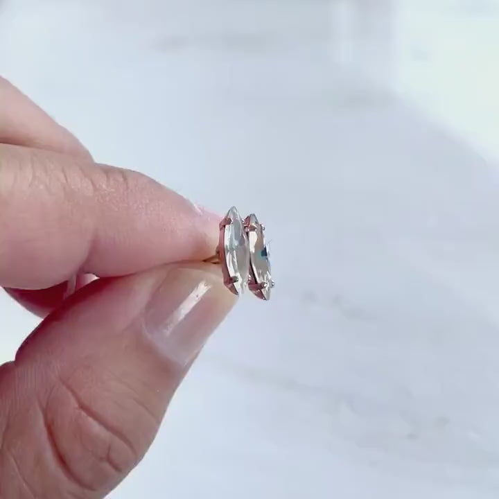 Petites boucles d'oreilles en or rose avec cristaux marquis incolores