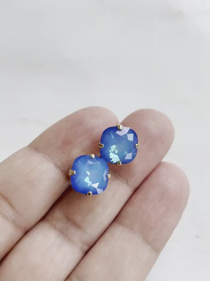 Each 10mm (.40") square cushion Swarovski crystal has been carefully hand-set into gold-plated posts, showcasing meticulous craftsmanship and attention to detail. The gold-plated setting adds a touch of elegance and sophistication to the overall design, creating a beautiful contrast against the sparkling crystals.