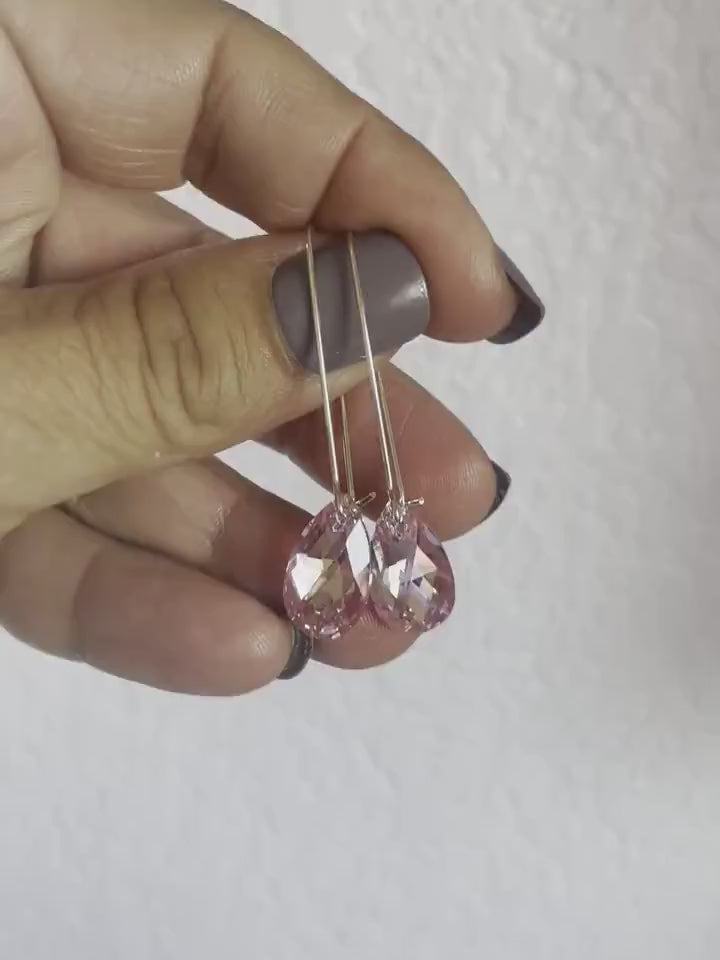 These stunning crystals hang alone, but with extra sparkle. These have a coating that makes them shine with a touch of iridescent radiance. The pear-shaped drops measure 16mm and hang on the silver-plated kidney wires for a total length of about 1.25". You can be sure these earrings will make a statement with their unique sparkling beauty. You'll make a lasting impression with these stunning and luxurious pieces.