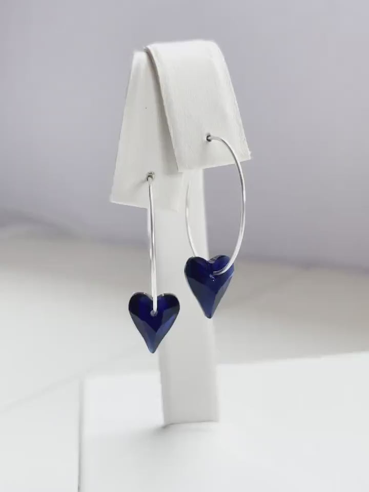 I take pleasure in uncovering different Swarovski Crystallized elements and these sweet beauties are really delightful. These excitingly-shaped hearts are referred to as wild hearts by Swarovski Crystal and measure 12mm in length. Dark indigo is the official shade, which appears like navy blue. Hanging from silver-filled hoops of around 1 inch in diameter, the shimmering crystals radiate. Image 4 is only for sizing information; this listing is for navy blue.