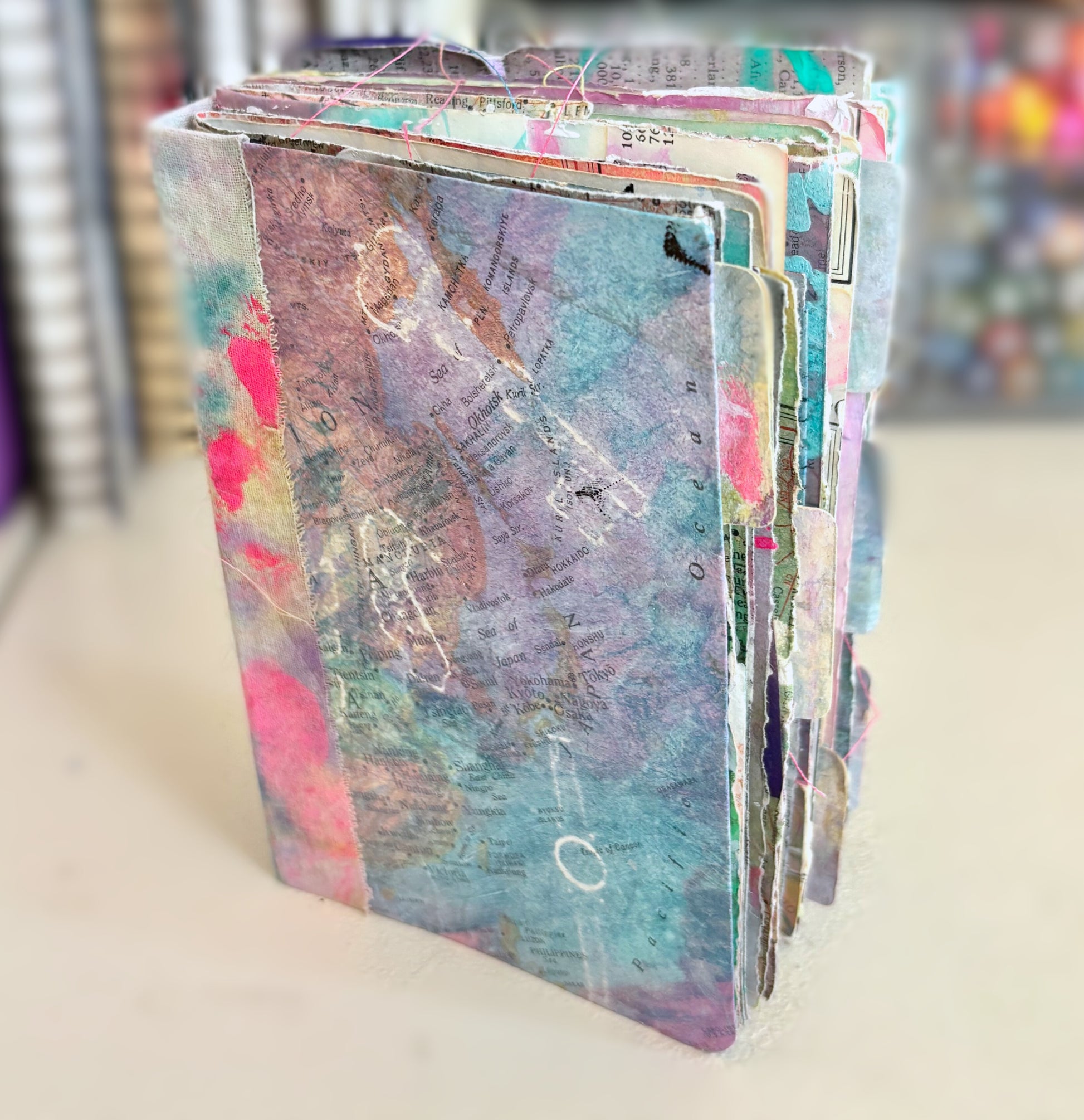 📸 Photos shown are examples of past journals for inspiration. In this workshop, you’ll create your own unique art journal using the provided supplies and your personal creativity.