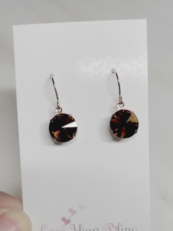 Rose gold is a delicate hue, perfect for accompanying these delicious chocolate brown crystals. We've placed each shimmering Swarovski Crystal — around 10mm — into cute open back earring settings. Below, rose gold plated French hook earrings suspend the dazzling stones 1" from the ear. These earrings bring together style and sophistication, making them a great choice for special occasions. They also make a wonderful gift for someone who loves fashion accessories with a classic touch.