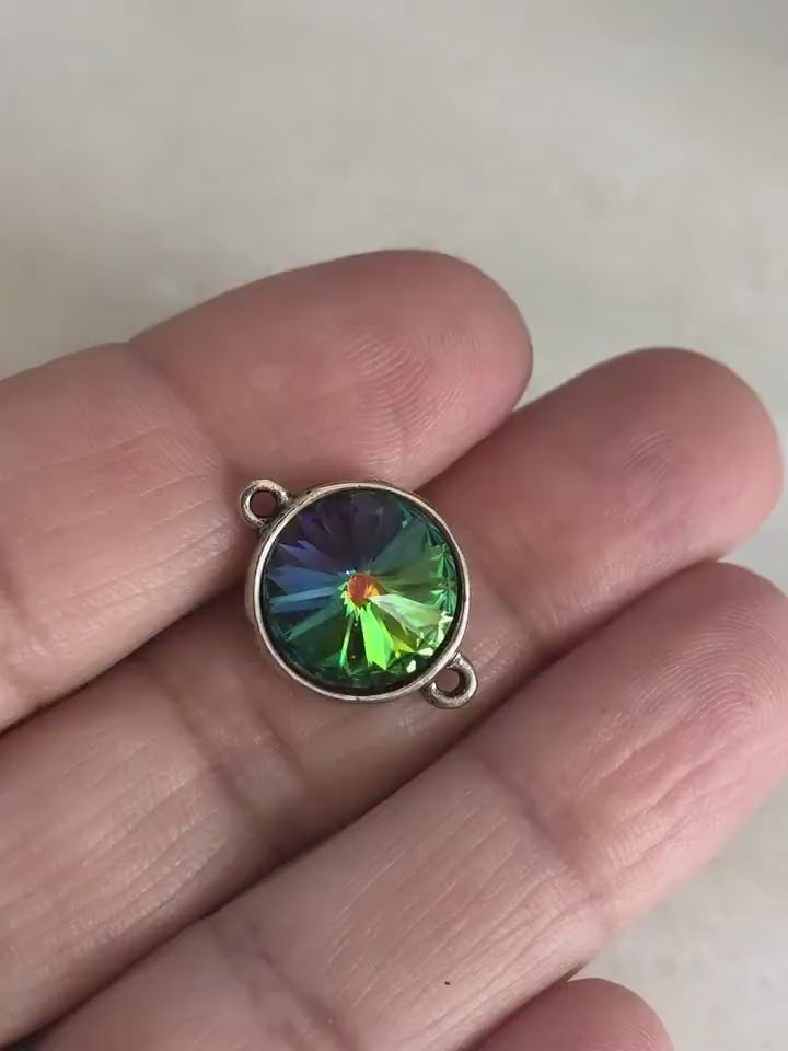 I love these sparkling rivolis, they shine in any light and have such rich colors. I have taken a 12mm rivoli in the colorful vitral shade and connected it to a silver-plated cable chain. The bracelet measures about 7", but can be made larger if necessary. The clasp is a small 9mm toggle. Can also be made into an ankle bracelet. The bracelet is lightweight and comfortable - an easy way to add a touch of luxury to your everyday look.